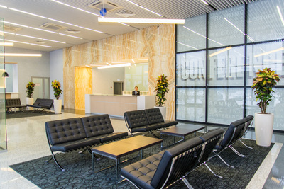 ● Инфраструктура в здании: конференц-зал, ресепшн, лобби-бар, кафе, салон красоты, аптека